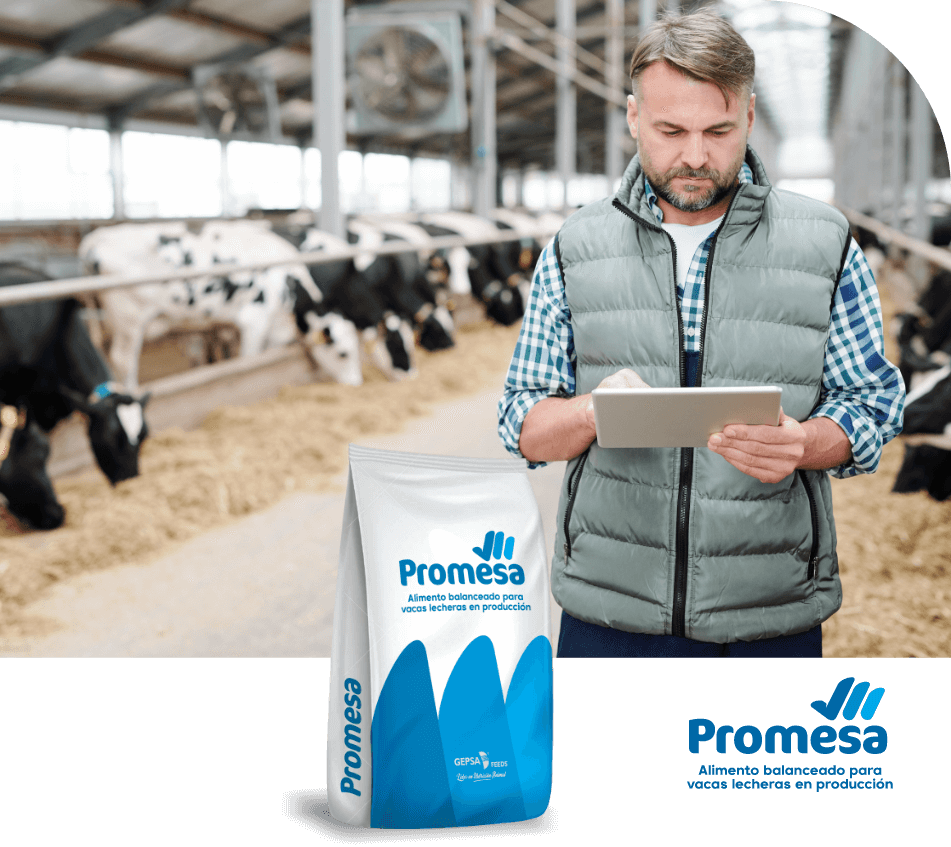 Se suministrará a vacas lecheras en lactancia que reciben silaje de maíz o de sorgo más heno de gramíneas de baja calidad. Se asume que el consumo de estos forrajes es sin restricciones y en estas condiciones, el consumo de Promesa 20% B.N.U. se orientará por la producción diaria de leche y el momento de la lactancia en que se encuentran las vacas que lo consumen.